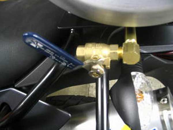 The fuel valve on the left side.. It is opened only after burning off 100 miles of fuel. A 14" hose runs down to the fuel tank cross over. There it is "T" into that fuel line... Gravity takes over and refills the main fuel tanks..