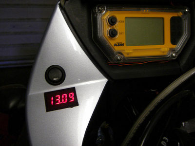 This photo was taken just before leaving on a cross country ride that included a BBG3000 (3000 miles in 48 hours). I used an electric fuel change over valve from a Landcruiser to switch between tanks. Main tank is on the non-energized port. Power for the solenoid is from the aux circuit (10 amp) behind the dash (same circuit as heated grips).