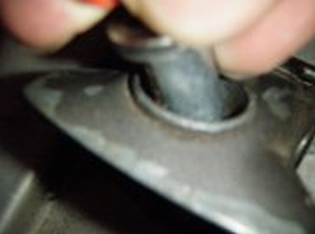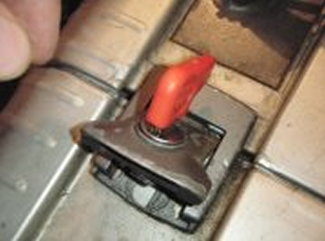 Now with key still in place you can re insert the new lock barrel, you just need to push that retaining tab back and you can do this by putting the barrel at an angle to the hinge body before.........