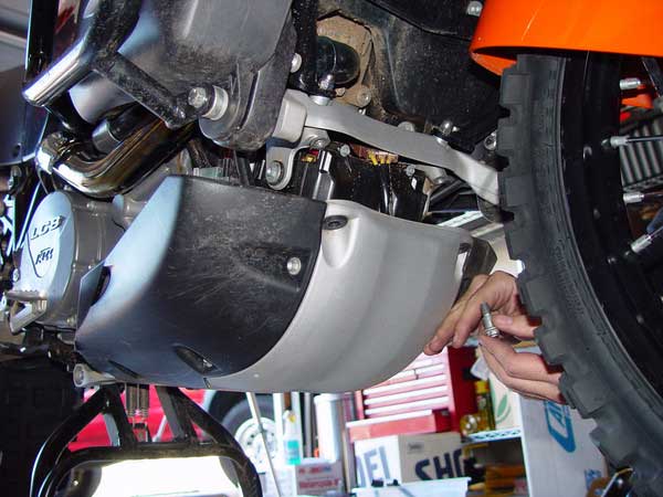 Installation of a Touratech Skid plate on an 07 KTM 990 Adventure.