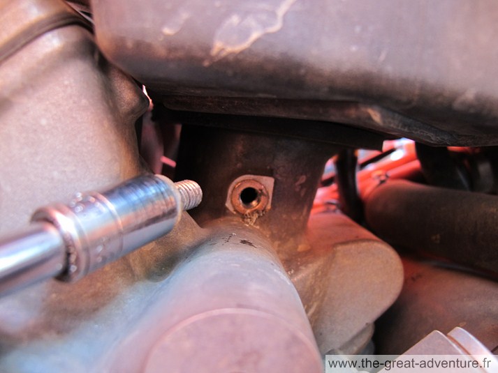 While taking out the stock one, mind the washer, here it stayed stuck on the engine :