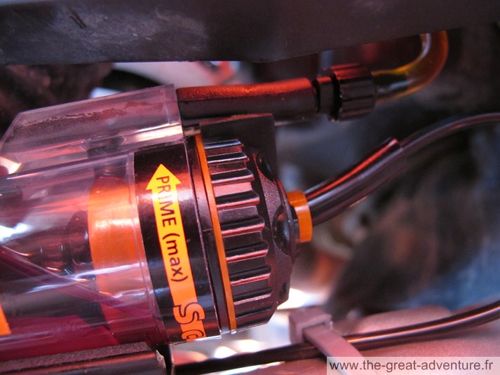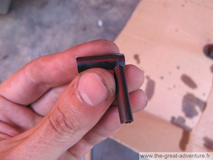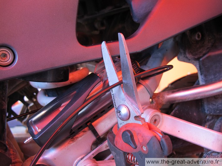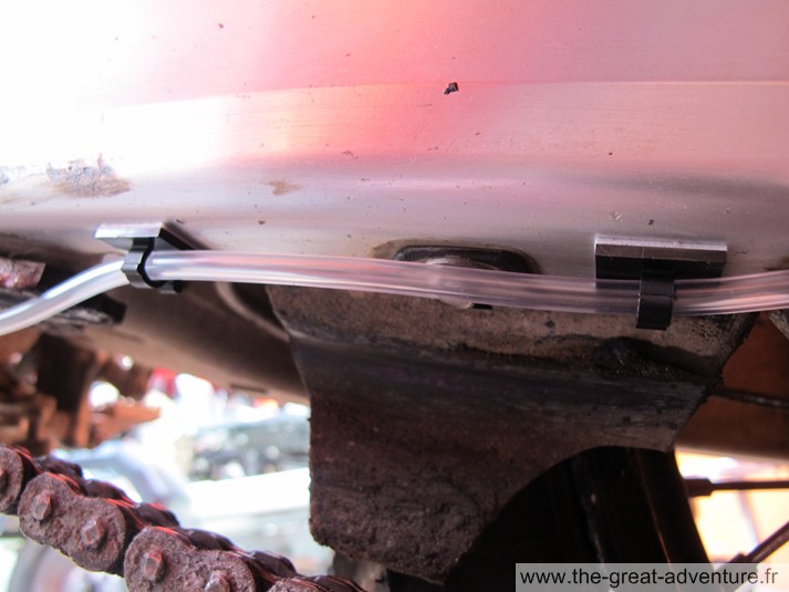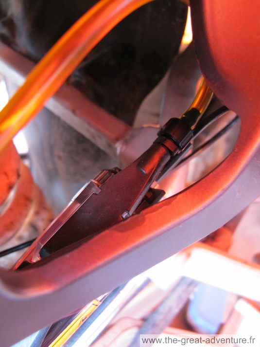 I cutted a small piece of plastic to be sure the tubing would not be damaged by the seat and I used some conduit to route it :