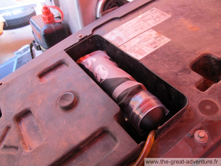 Then it can take any shape to fit anywhere on the bike. On the KTM 990 Adventure the best place is under the seat :