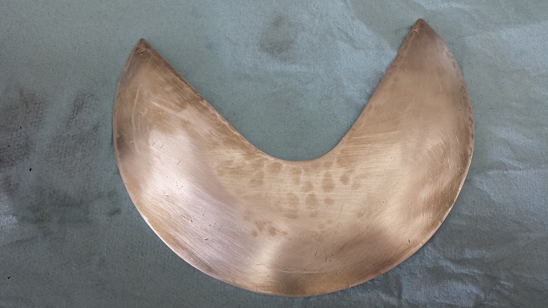 I first stenciled a pattern using some paper and a pencil to get the basic shape and lines of the cover. I then added about 1/8" to the outside of the pattern to allow for mistakes when cutting and a better final tuned fit with some filing and sanding.
