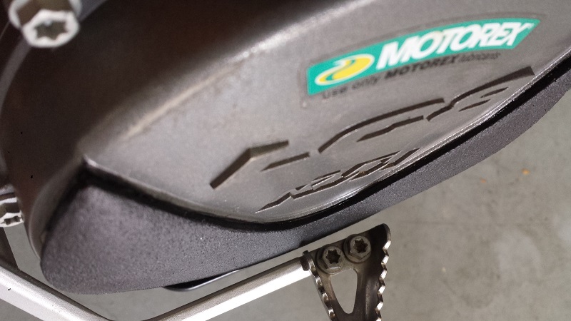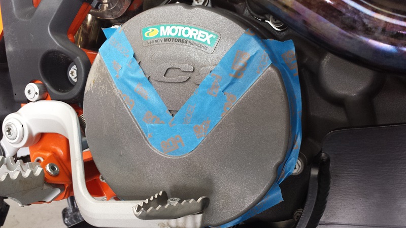 I masked off the clutch cover to hopefully make any excessive adhesive that squeezed out easier to clean. As it turns out this step wasn't entirely necessary as I had minimal adhesive squeeze out. You can see the scratches on my cover. This is from my boots, and only after about 2 rides in the dirt. That is some weak ass paint KTM...