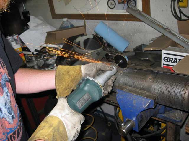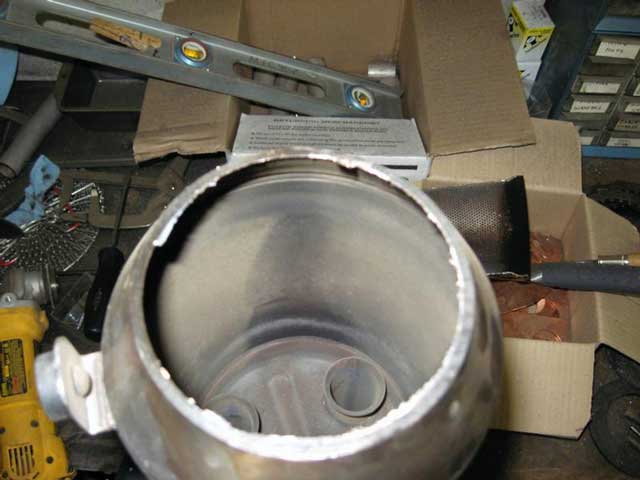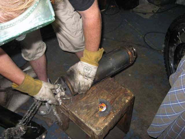 so we concluded that the best way to de-cat it was to cut off the mounting flange, remove the cat completely, and weld the flange back on...