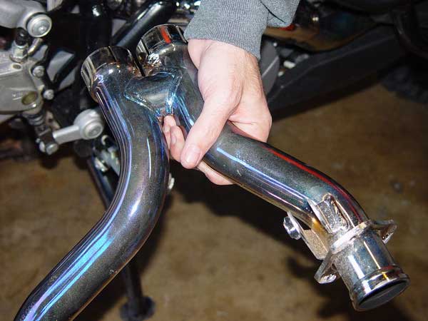 Here you can see the new header pipe installed on the bike, note that you use the stock mounting points for this whole system just none of the hardware since the stock one has captured nuts. The directions are not that detailed but the diagram lets you figure it out pretty quick overall.