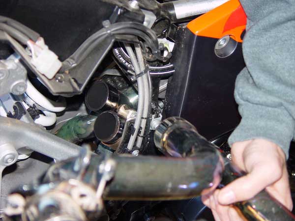 Installation of a Leo Vince exhaust on an 07 KTM 990 Adventure.