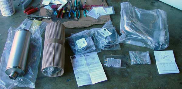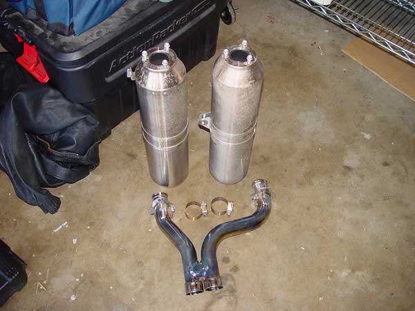 Here the cans and inner fender are removed, next comes the mid pipe.