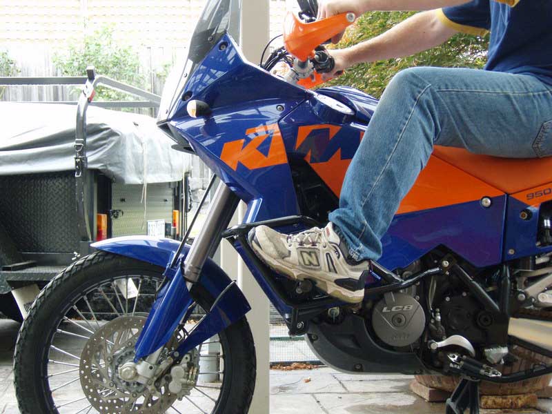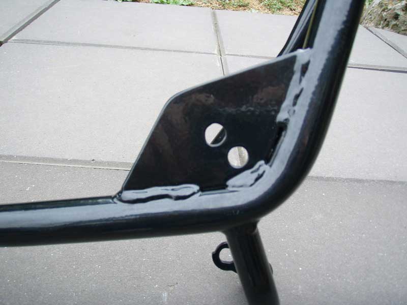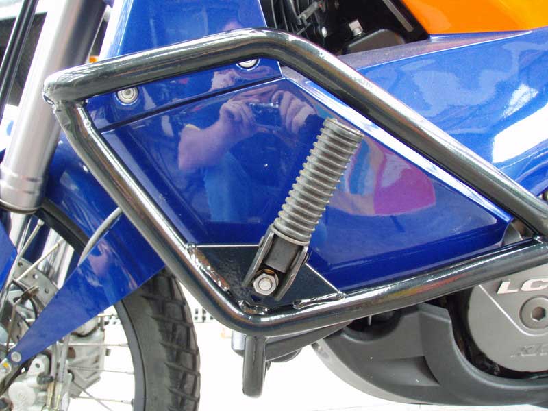 But if your going to the same trouble of welding and then powder coating the crashbars then I really recommend modifying the side stand while your on the go.. I can`t understand why KTM have made such a small foot for such a large bike designed to be in the mud..