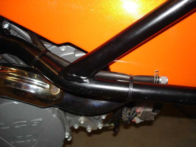 I also relocated this thing---What is it??? I've been told it is a fuel drain in case you tip the bike over, which I've done a few times. Both times I had trouble starting the bike until I drained this line and then it fired right up. Is this location ok---Much easier to get to attached to crash bar: