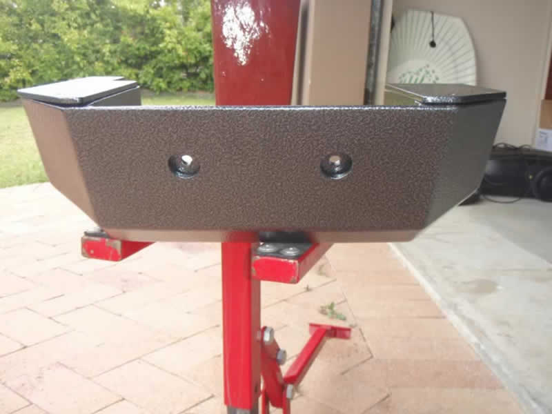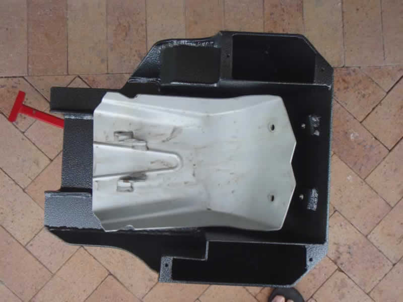 Hi all, just finished installing my new bash plate. All up the job of installing took all of approx 20min from start to finish including the removal of the original one. I am pretty happy with the results and the fit was perfect and should offer much better protection than the standard one. With the built in tool box's able to carry some tools, pump ext. I had it powder coated in a colour called antique silver which is black with a silver through it. It has a hammertone type finish and is quiet thick. With the silver in it, the scratches and chips should not be to obvious, though we'll have to test out this theory. Anyway here is a few pics.
