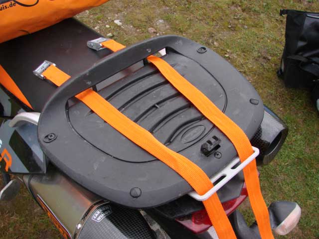 The rear plate. Its a TT rear rack for SE (very nice quality) + Shad/MotoDetail adaptor plate fitted on top of it. Now its even better for strapping roll packs.