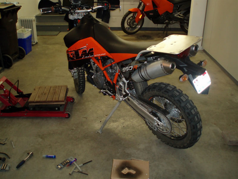 I fitted it up to my 990 Adventure and it looks like it would work. It might not work on those bikes with the 2 into 1 and left side extra tank. It's the '05 '06 KTM Kickstand. ProMoto Webpage