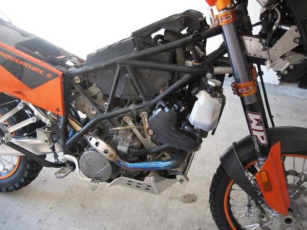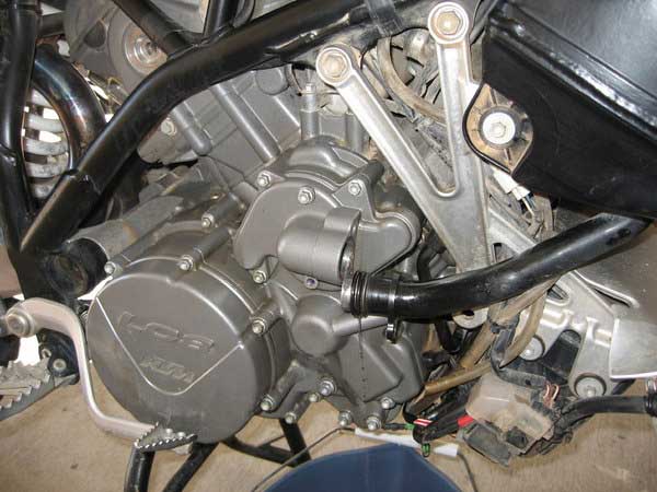 So you start of by stripping the beast down. Remove any tank guards / tank bags you have on your bike and the right side tank. You also need to remove the front header pipe to gain sufficient access, to do this you may have to loosen the right hand rear side panel off (but not fully remove) to gain access to the rear header pipe clamp. With a stock bash plate remove the right side cover, with an aftermarket bash plate remove the front two mounting bolts and swing the plate down out of the way, or remove it completely.