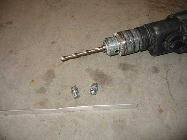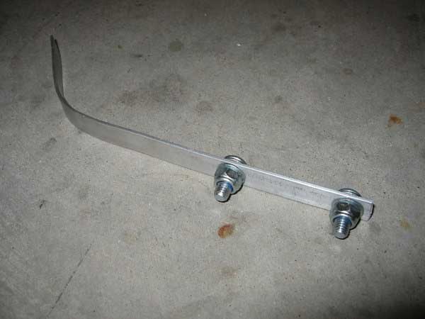 Now you need to be a little creative. To prevent damage to the water pump drive mechanism in any way, it is advisable to hold the impeller using a suitable tool. It took about a minute to make the tool and here’s how. Get some half inch flat bar of some kind (light duty is fine) and drill two holes in t to mount a couple of nuts and bolts. These should be a distance apart so they are approximately in the center of the blades on the impeller.