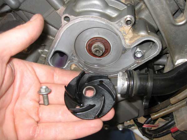 Carefully pull the impeller from the shaft without damaging it (its only plastic). It could take a little persuasion due to excess Loctite holding it in place from the previous installation.
