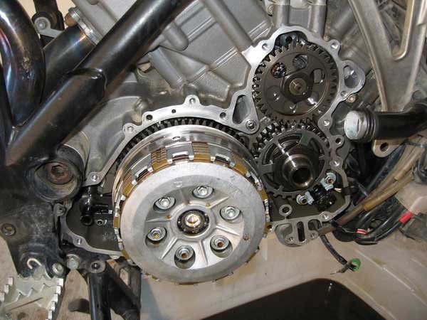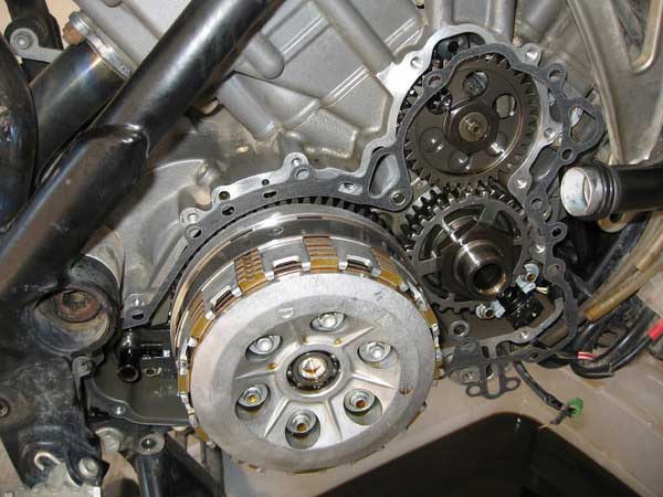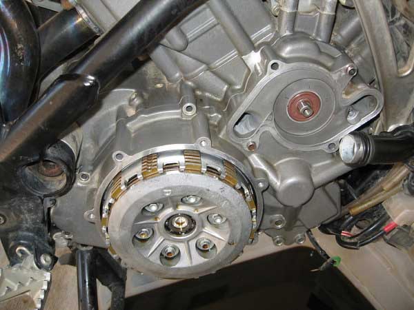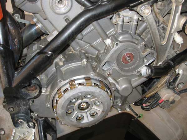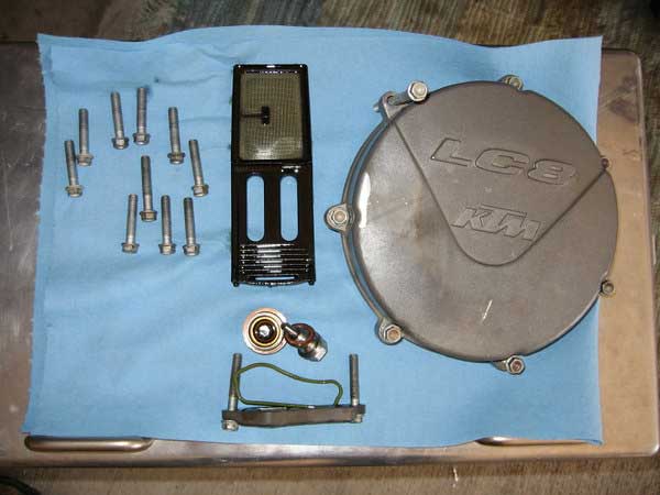 Remove all of the mounting bolts for the inner clutch cover. You do not have to remove the outer clutch cover from the inner clutch cover but one of the bolts (top left) runs through both and has to be removed. I removed the outer cover in the photos. Make a note of their positions as some are slightly different in length.