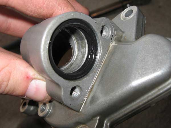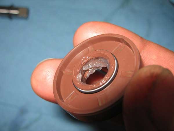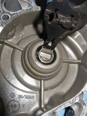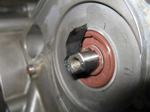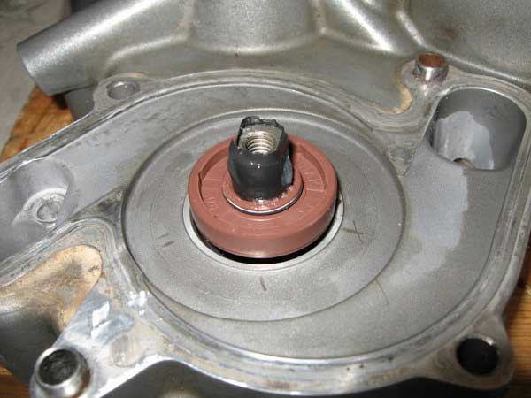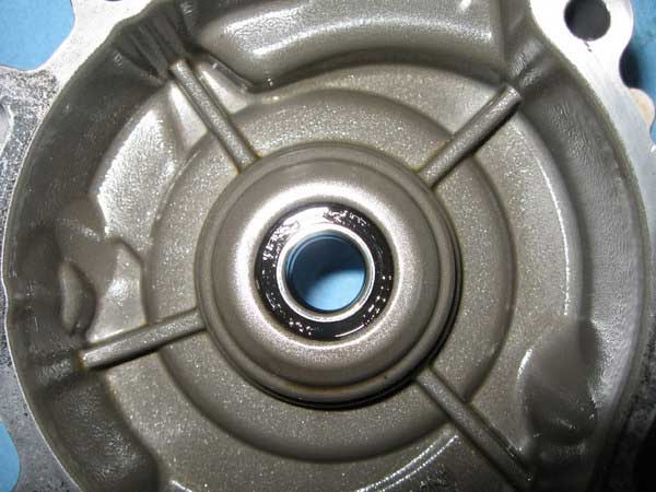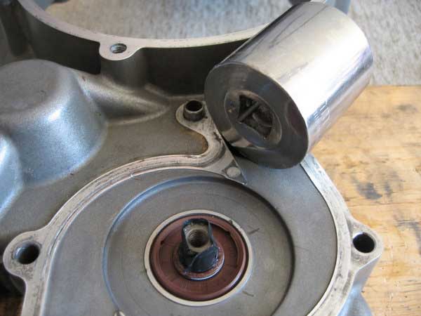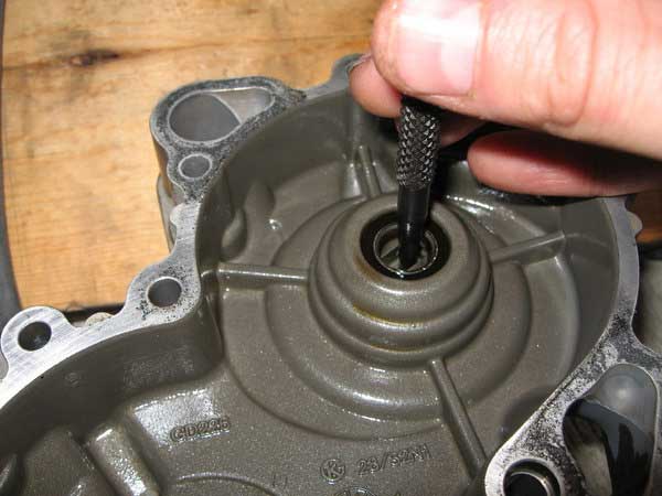 Now remove the seal from the outer side of the cover. This is not all that easy so I found it better just to punch the old shaft out from the inside which takes the seal with it as it has a circlip attached behind the seal.