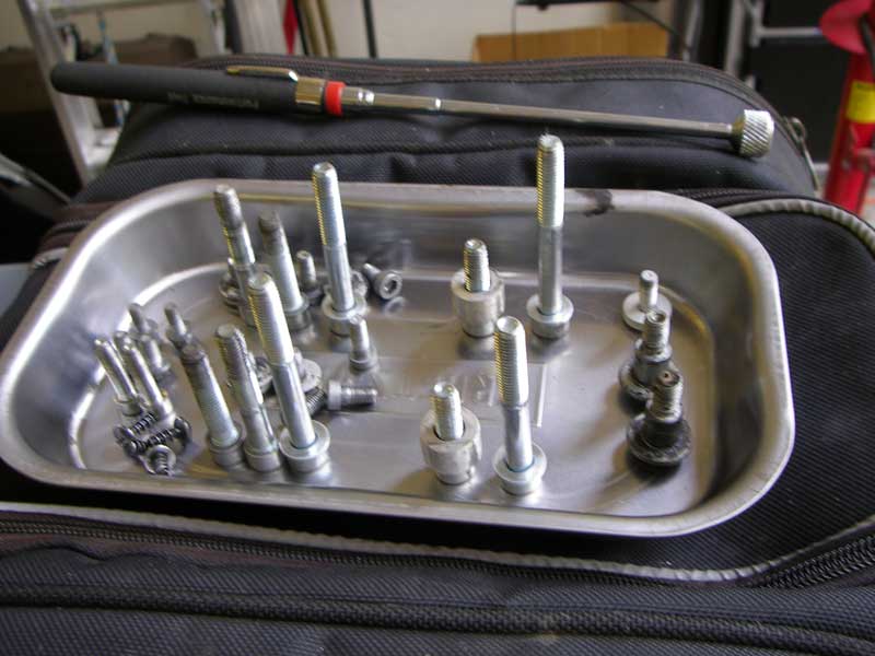 A couple of these magnetic parts trays come in very handy when doing projects such as this. I have one for the chassis fittings and another for the engine.
