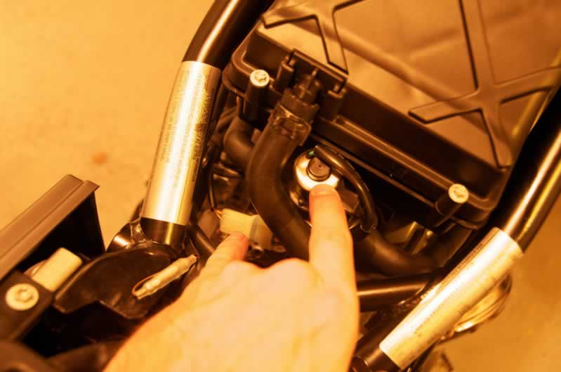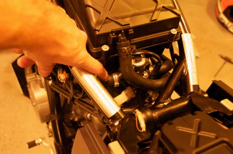 This is where the SAS pump connects to the airbox. Remove and cap with a rubber vacuum cap. The block-off plates from KTM Twins came with the necessary cap.