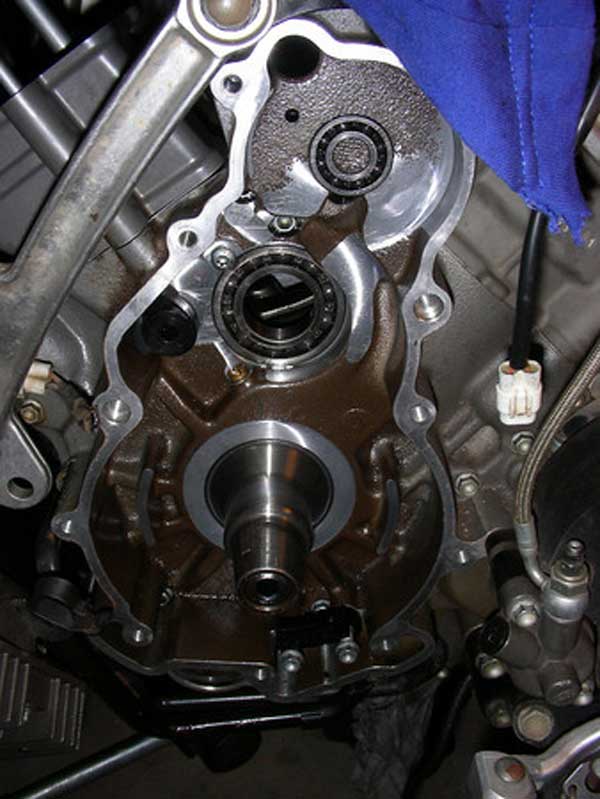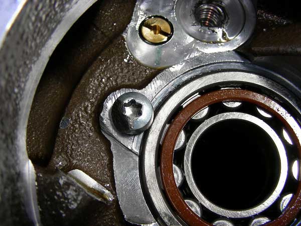 The locking screw for the balance shaft bearing on the right side of the motor has also seen some wear from the cam chain;