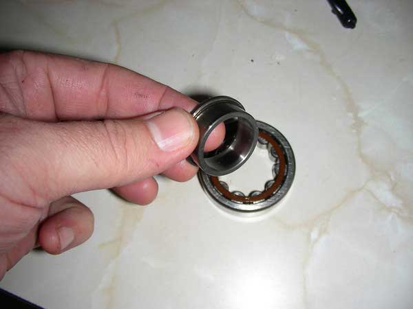 This left bearing has a race in it that has a lip on the engine side of it that prevents the race from falling out.