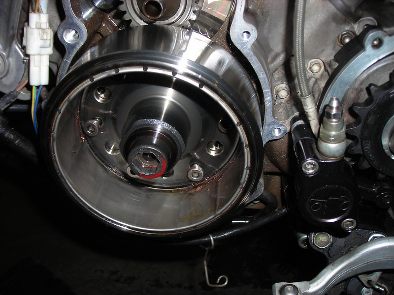The bike was described as having a motor problem, "a noise" as well as a charging system issue. Stator and cam chains diagnosis, possibly with the flywheel loose on the crank taper. That was the worst case scenario in my mind, as a wrecked crank taper would be expensive and time consuming.