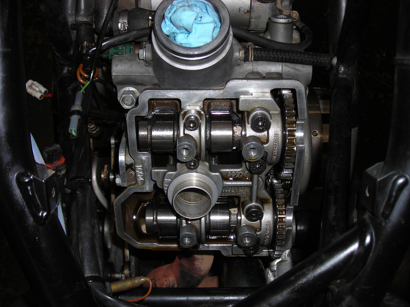 Where was I? Skipping around a bit it appears. The last pic was of the box of shims I bought from Hotcams, and I suppose it wasn't really necessary. There was only one valve that was truly under spec and I could have just ground the shim a couple of thou.