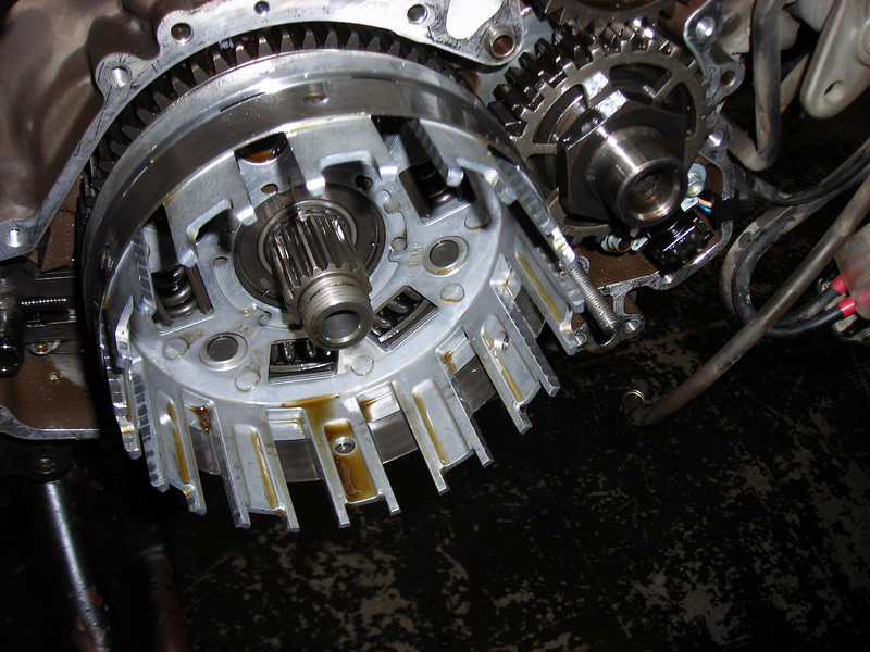 I had been avoiding the clutch. It all looked ugly, and I had decided to tough it out and not replace any parts, aside from the basket needle bearing, which looked a little suspect with color.