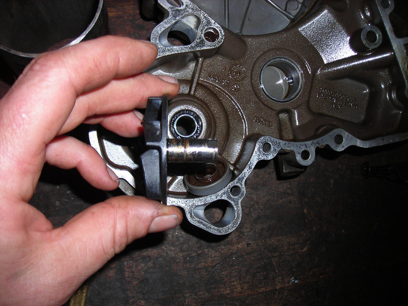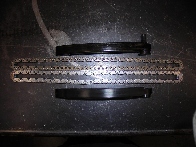 Another brief note on the whole "noisy chains - lame tensioners" issue. As I primed the tensioners, I reckoned that one faces up and on faces down. There is a ball valve that retains the oil in the body of the tensioner. The other end is closed and cannot possibly leak out oil. So the one on the right side, which has the open end facing up cannot ever bleed down. The one on the right side (behind the oil tank) has the ball valve facing down and can leak out the oil over time while sitting. So it is interesting that the worse chain wear seems to happen on the right side. Gravity. Must be gravity, somehow...