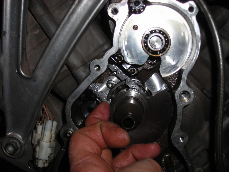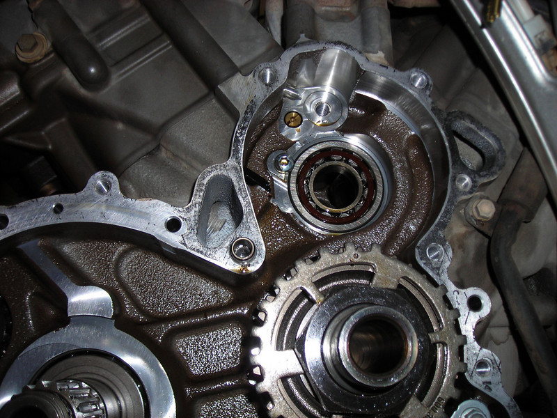 Getting set to put the chains in, I had a close look and saw serious rub marks on the bearing retainer screw shown here.