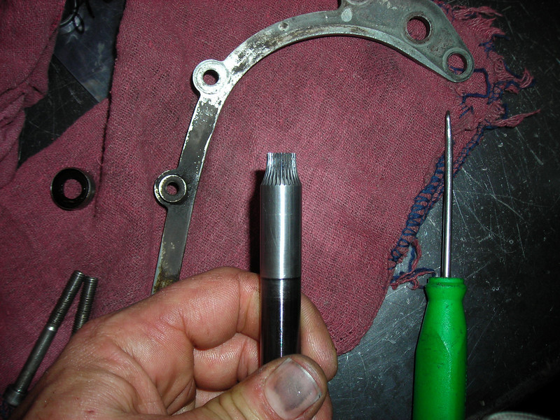 BTW, the splines on that countershaft were BARELY worn. Very very good news. I've seen Honda Hawk 650s with wasted splines at less than 50K.