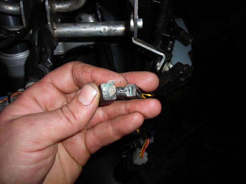 All these plugs are exposed to road spray and were moderately fuzzy with green corrosion. These molex-type plugs do not have o-ring seals, unlike the coil plugs or the starter solenoid and fuel pump connectors.