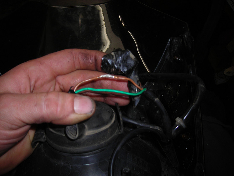 After I serviced the plugs under the dash, I went to put the headlight back on, but noticed a ball of tape on the light's wiring. I peeled it off to check it out, fully expecting some crummy repair, but check this out...