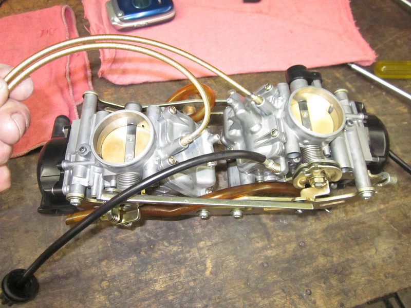 I moved the clip to the third slot and I changed the float height to 4 mm from 3 mm, based on what I could scoop out of the 10,000 jetting posts here. Synch'd with a car-type air meter.