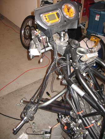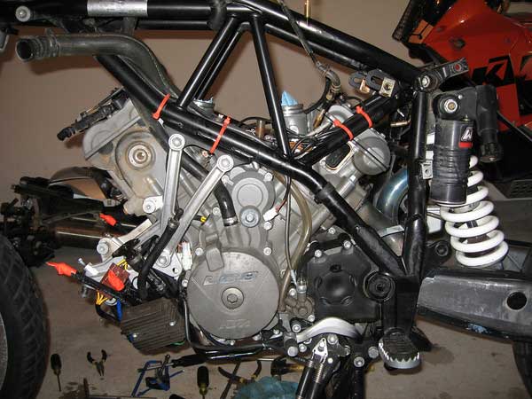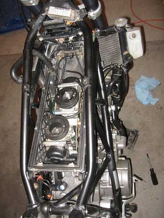 With the engine finished, I loaded it back into the bike and began to build everything up around it such as electrics, carbs (after fully rebuilding/cleaning them), fuel pump (aftermarket), radiator, oil tank etc. and checked / greased the rear shock and swingarm assembly while I was at it.