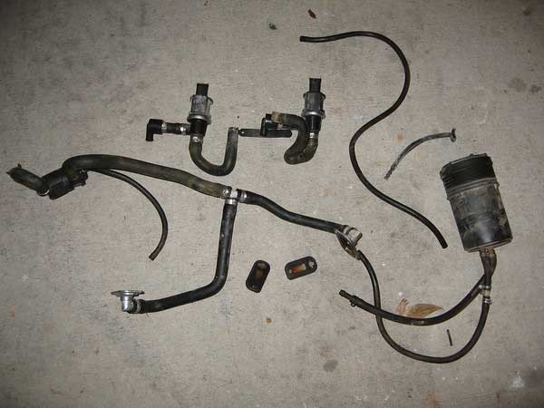 I then set to on the exhaust system, junked the old cans, along with all this emissions junk!