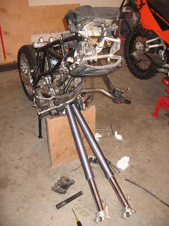Stripped the forks gave then a good service for now. I’m not sure what I’m going to do with them in the long run, if I keep the bike I’ll probably sell them and hunt some factory 320mm stroke suspension from somewhere…..OK I don’t want to give too plans away just yet! Maybe I need those for my orange bike………………..