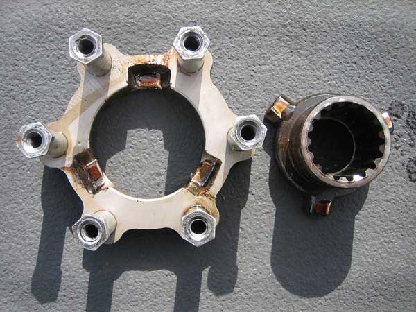 Inner hub (right) is splined to the transmission.