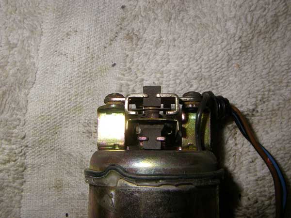 The pump pumps fine, but the internal control circuit is the weak point. Points, that is, are the problem. The Mitsubishi fuel pump that KTM uses is a diaphragm type with a mechanical interrupt mechanism. This mechanical interrupt is what causes the pump to cycle through its stroke. It is the points that make and break the power connection each time the pump goes through a stroke (several times a second) that erode and eventually fail. Below is a photo of the points in an OEM pump after 20k miles.