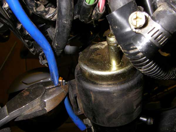 Now snip the wiring to the pump. I left enough wire on the OEM pump so that I can add a connector and use it as a spare (fat chance that'll ever happen), since its still working well.