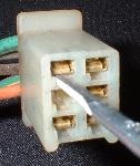 You can splice the OEM pump's connector to the Facet wiring, or a better (more sanitary method) is to pop the spade connectors out of it, and either salvage those to crimp to the Facet wiring or crimp on new. The pins can be pushed out of the plug with a special tool that you buy or make. Click the next image for link to a site that will help you do this. Be sure to pack connector with high temperature dielectric grease (silicone grease) before connecting to the wire harness.