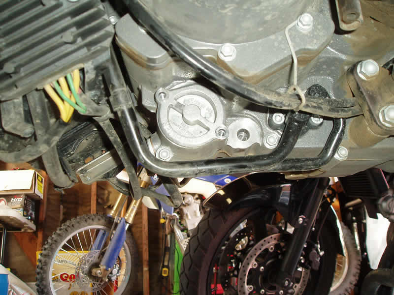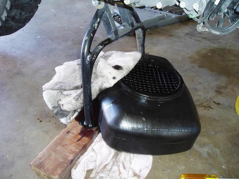 Now you want to drain the crank case. This is the large bolt on the bottom of the motor (17mm IIRC).