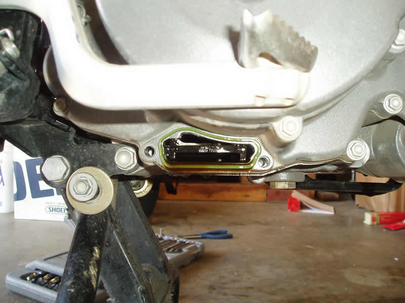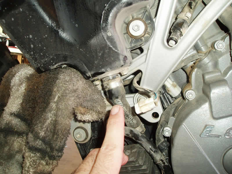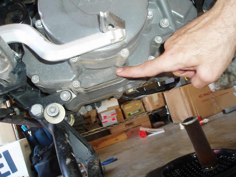 Now after reinstalling the drain plug (you did remember to use the washer right?) remove the oil filter, it is on the same side of the bike below in front of the foot peg.