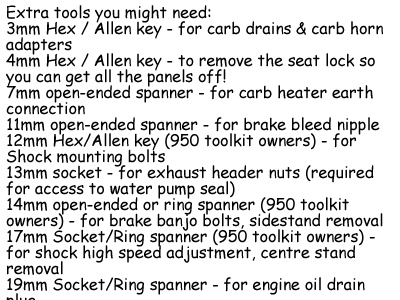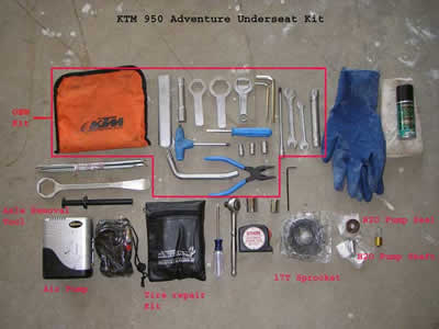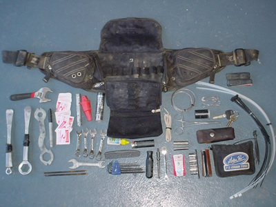 These pages are links to articles and threads that cover just about every aspect of tools for use on the road/trail. Later we may add articles on tools for use in the shop or garage. If you cringe at the sight/smell of grease and oil you may like the The Minimalist Approach - A high tech alternative to carrying all those heavy/greasy knuckle busters.