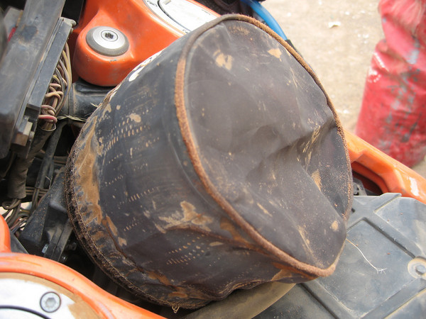 Over 3000miles of, well, off-road riding in lots of sand and dust and I just checked the stock paper filter - spotless, infact it is just like new, amazing. All I did was remove the K&N half way through my trip and bashed it out on the floor. Not because it was blocked, just because I could and I was keen to see how it was performing.