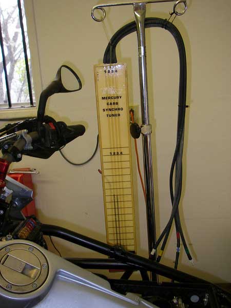 Syncing, AKA balancing, the twin Keihin CVRD 43 side draft carburetors is a snap. The KTM 950 is probably one of the easiest "faired" bikes I've had the pleasure of doing in my forty-seven years of tuning. The carbs should be checked for proper sync every 15,000 km. I also check the sync anytime I make any changes to the carbs, adjust the valve clearances, or the engine "feels" rough or otherwise is not running smoothly.