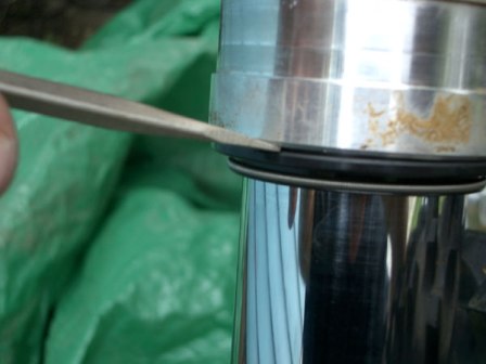 Take the tear-off and slide it against the fork tube, in between the fork tube and seal.
