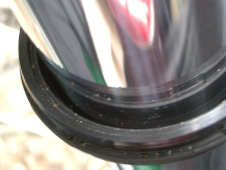 After, don't forget to also clean the dust wiper before replacing it. Put the dust wiper back on and try bouncing on the forks a little and take a look, it should be cleared up.